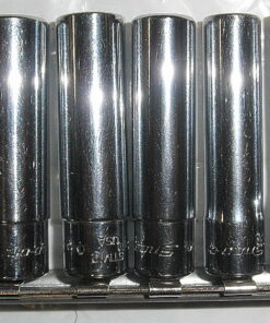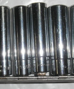 110STMY Snap-on 10 Pc 1/4″ Drive 6-Point SAE Flank Drive® Deep Socket Set 5120-01-429-3625. Used; a few pieces have very light oxidation. 5/16″ and 3/8″ sockets show minor wear. Includes 3/16″ STM6, 7/32″ STM7, 1/4″ STM8, 9/32″ STM9, 5/16″ STM10, 11/32″ STM11, 3/8″ STM12, 7/16″ STM14, 1/2″ STM16 and 9/16″ STM18. Snap-on 265 Socket Rail. GTBD9