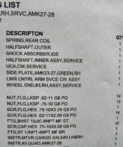 2520-01-609-1421 3977402 Service Kit, Axle #3 RH REV A MK27-28 USMC MTVR. Includes Inner and Outer half shaft, shock absorber, coil spring, upper control arm, lower control arm, side plate RH and Wheel end #3, RH. (Drum, Shoes, spindle, bearings, brake chamber. Oshkosh part numbers 3195238 3307160 3377242 3872485 3976447 3977657 3979431 3983677 and 3353278. 5360-01-478-6442 2520-01-474-5706 2510-01-472-9725 2530-01-485-3168 See all Photos. 016091421 Axle Assembly, Automotive, Driving Unassigned