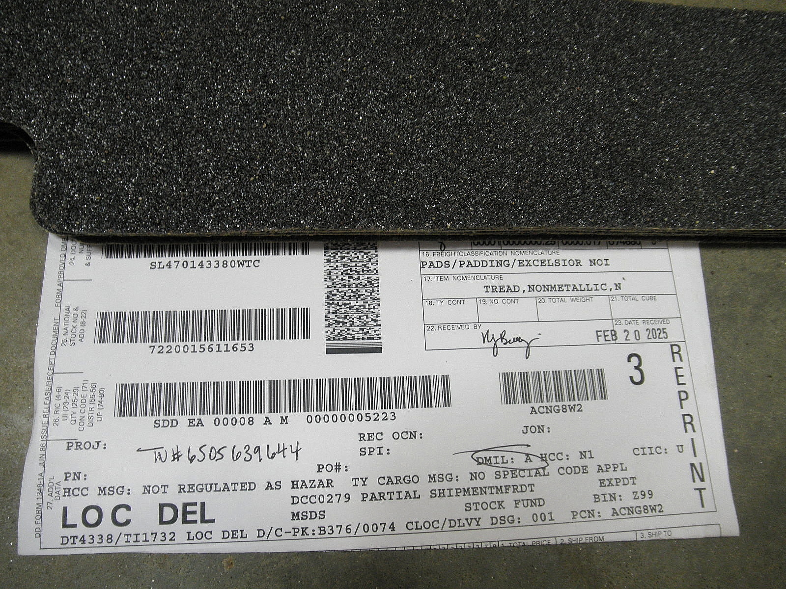 7220-01-561-1653 3338999-69 Tread, Nonmetallic, Nonskid Traction Tape C-130J L6C5